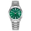 Automatisk klokke med safirglass fra Citizen med grønn skive og lenke i 316L stål.