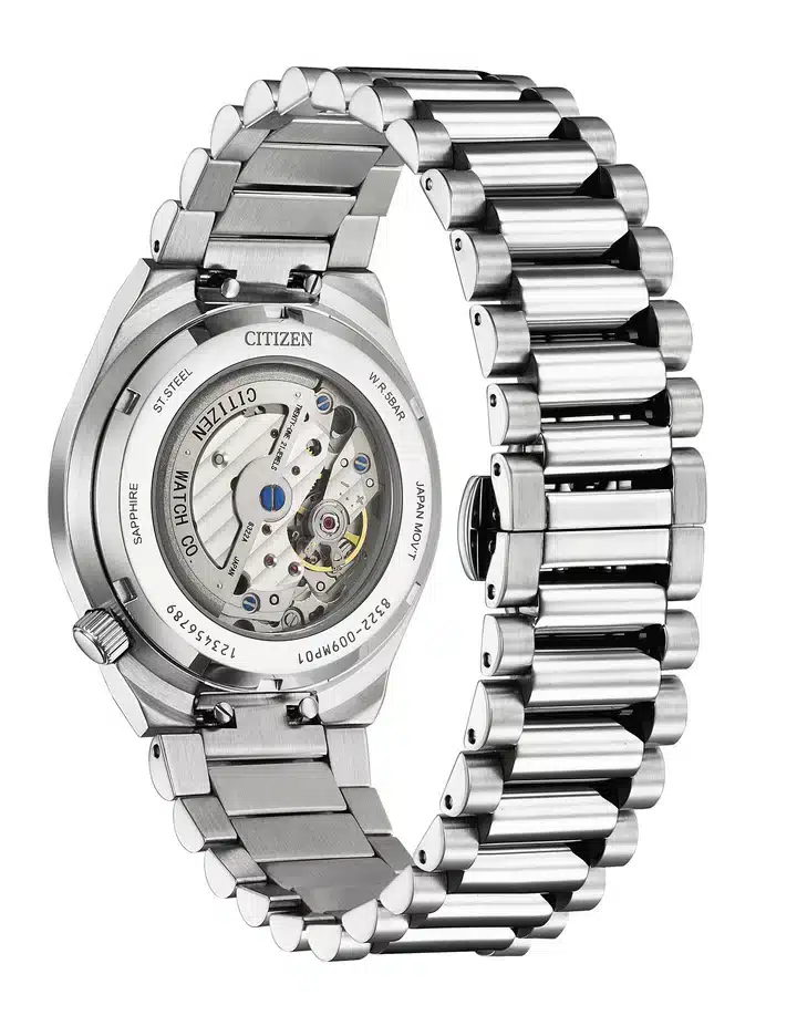 Automatikk klokke med lenke og kasse i rustfritt stål. Klokken har en liten sekundviser, safirglass og måler 40mm i diameter.