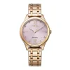 Denne elegante og minimalistiske 32mm dameklokken fra Citizen kommer med en nydelig lys rosé farget urskive med små stener og romertall klokker 12 og 6.