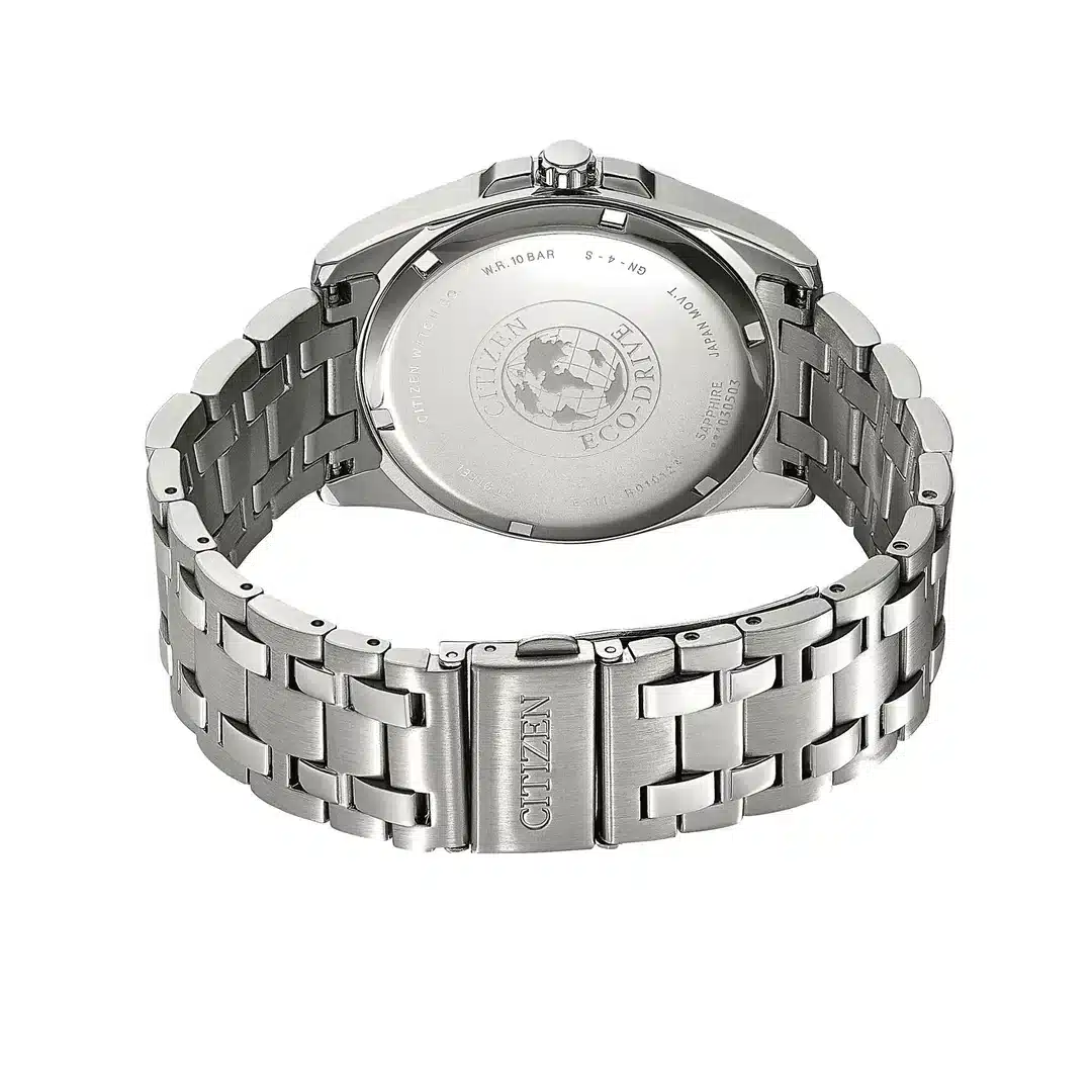 Urverket er quartz og den er drevet av Eco-Drive teknologi. Klokken er vanntett til 100 meter.