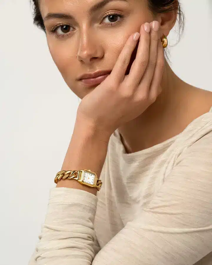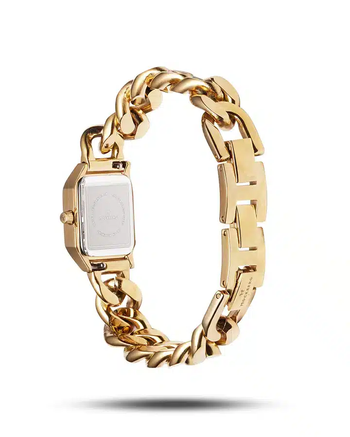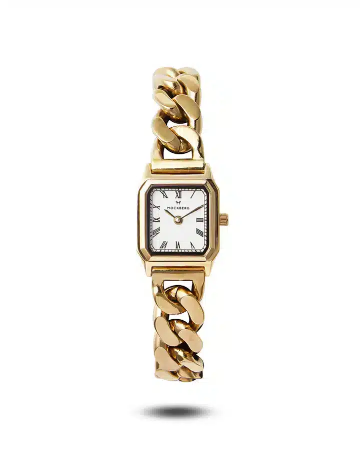 Grace klokken er en nyhet fra Mockberg som utstråler eleganse. Med sitt tynne design og moderne lenke er dette en klokke som ligger som et nydelig armbånd rundt håndleddet. Grace klokken er din perfekte partner, både til hverdags og på fest.