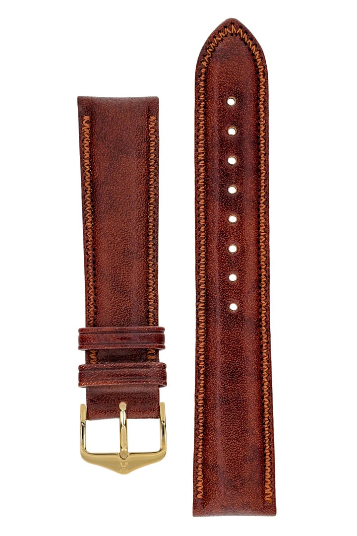 Hirsch ASCOT English Leather Watch Strap in GOLD BROWN