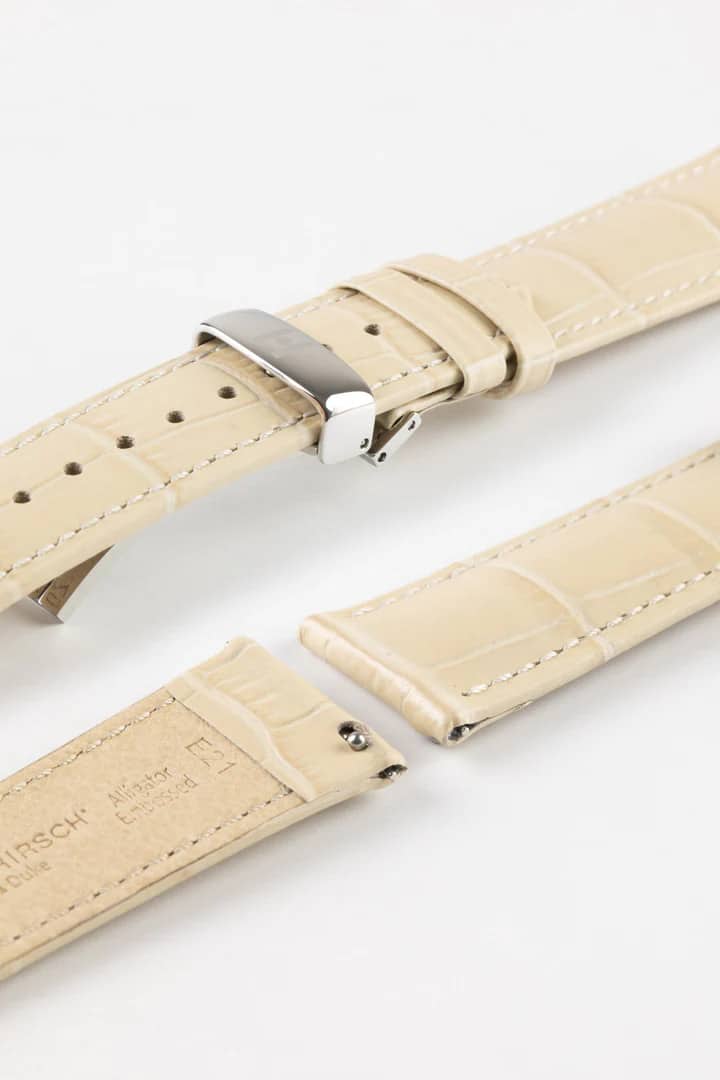 Hirsch DUKE Quick-Release Alligator Embossed Leather Watch Strap in BEIGE