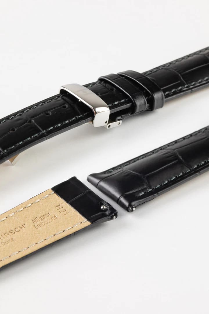 Hirsch DUKE Quick-Release Alligator Embossed Leather Watch Strap in BLACK