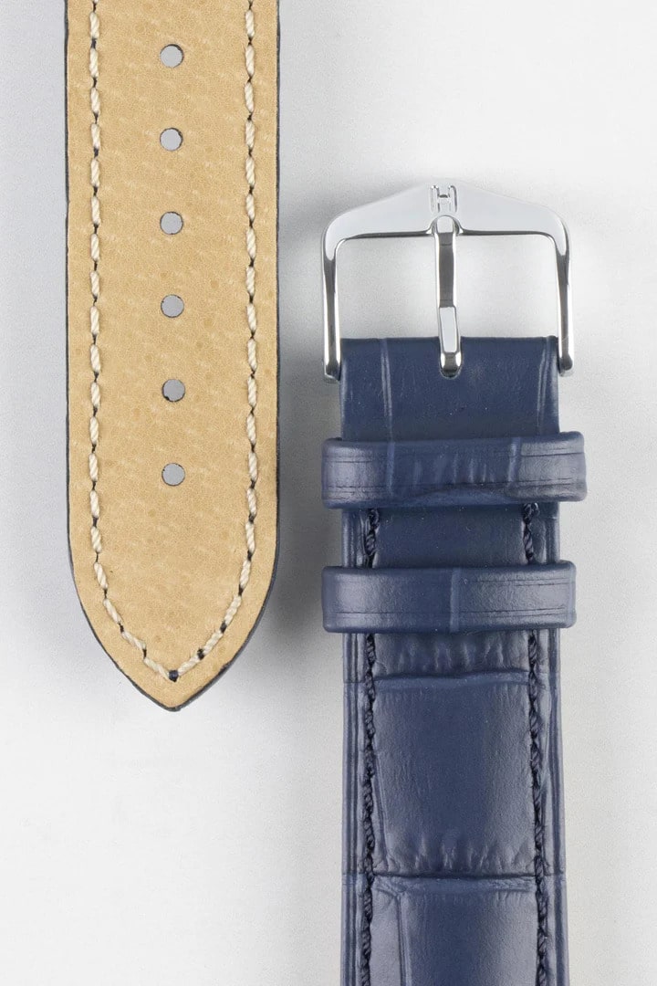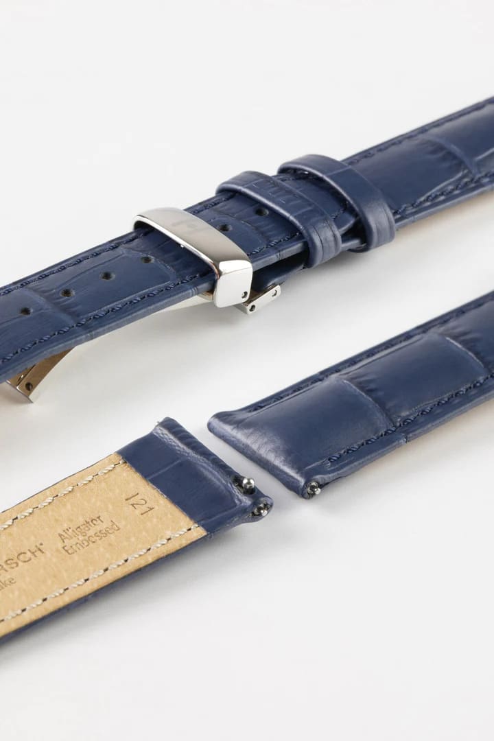 Hirsch DUKE Quick-Release Alligator Embossed Leather Watch Strap in BLUE