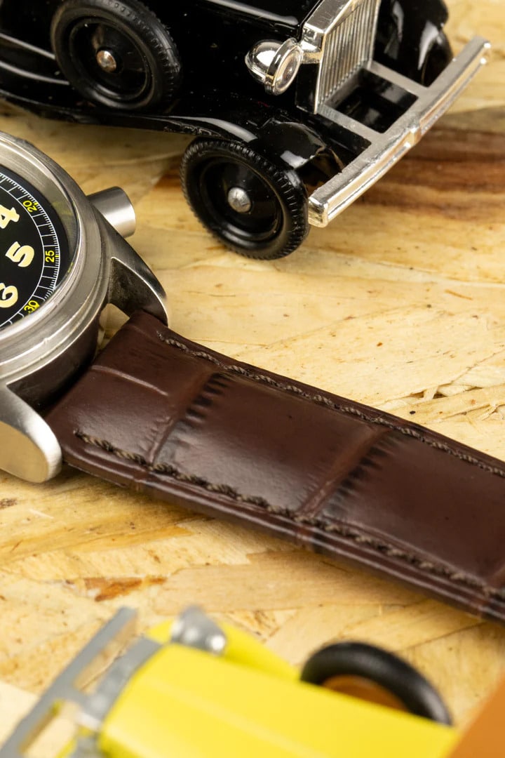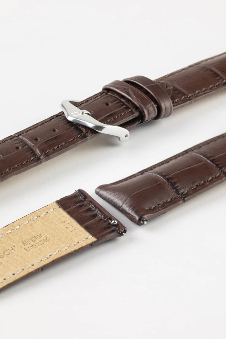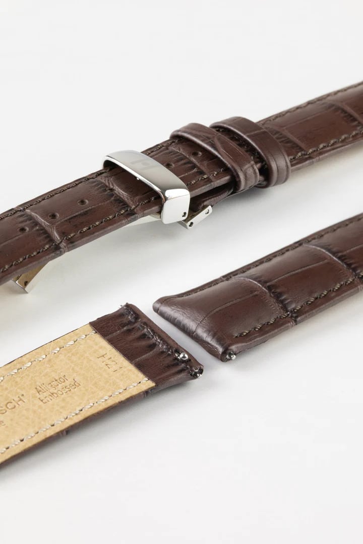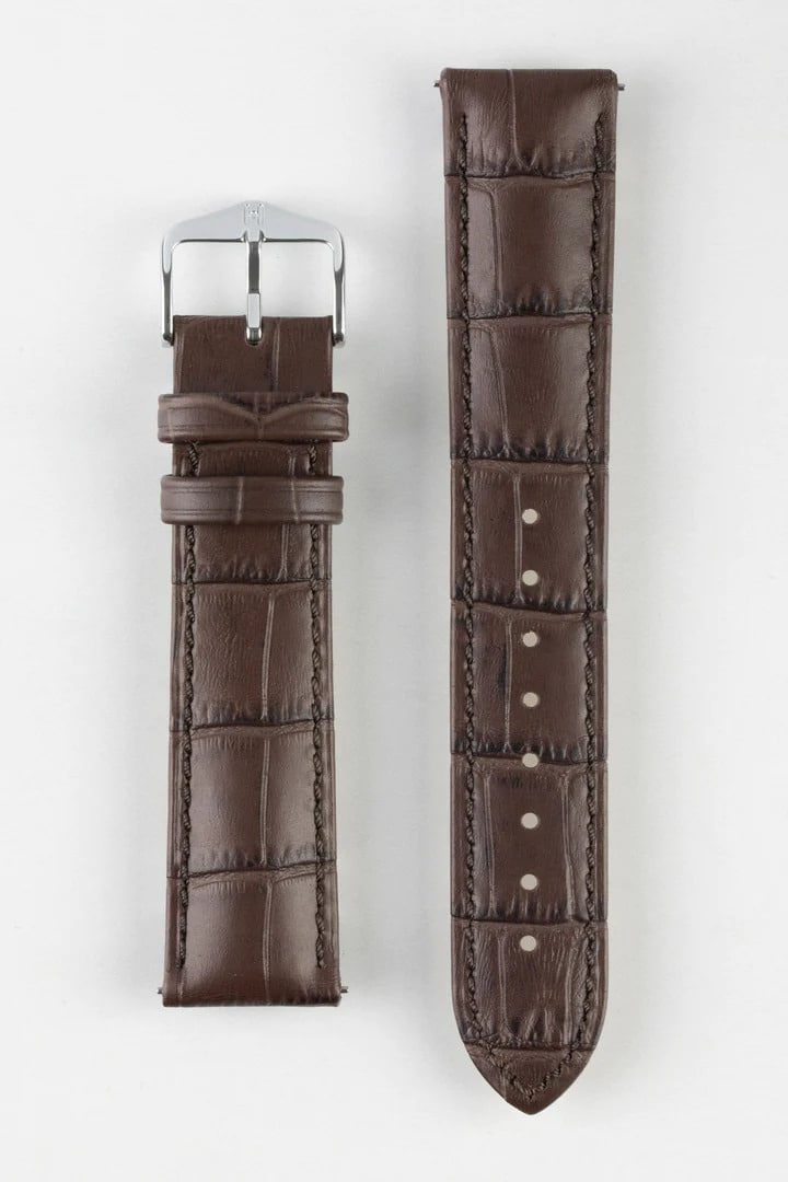 Hirsch DUKE Quick-Release Alligator Embossed Leather Watch Strap in BROWN