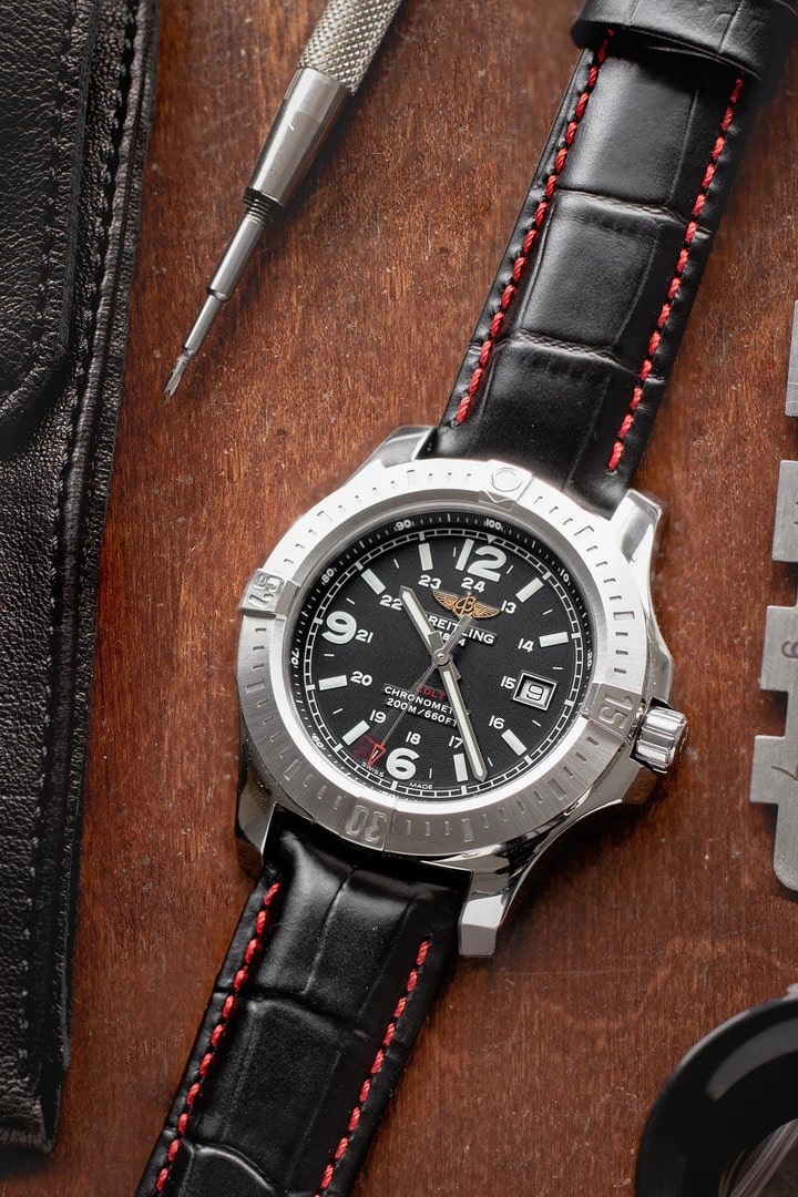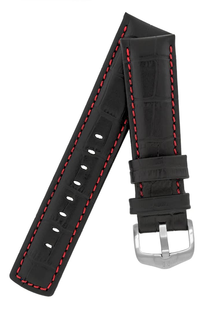 Hirsch GRAND DUKE Water-Resistant Alligator Embossed Sport Watch Strap in BLACK / RED