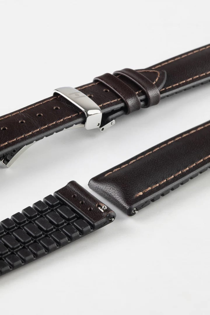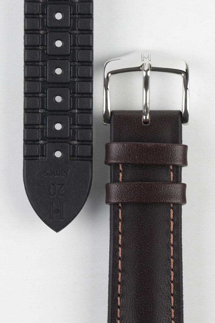 Hirsch JAMES Calf Leather Performance Watch Strap in BROWN
