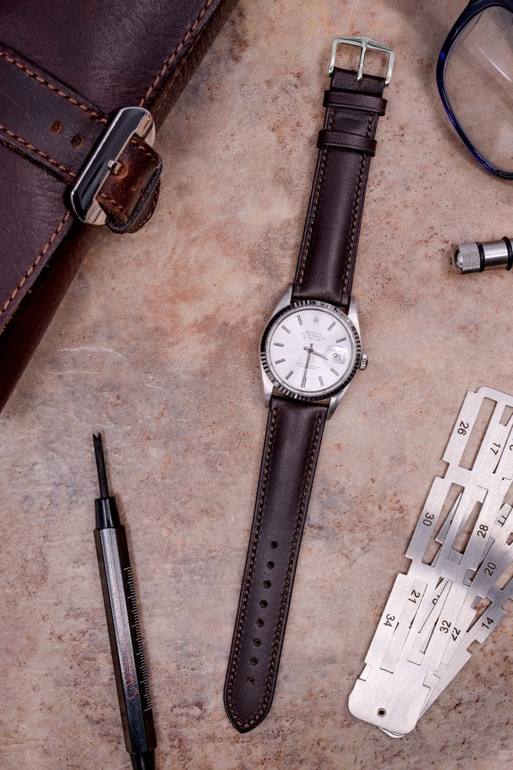 Hirsch KENT Textured Natural Leather Watch Strap in BROWN