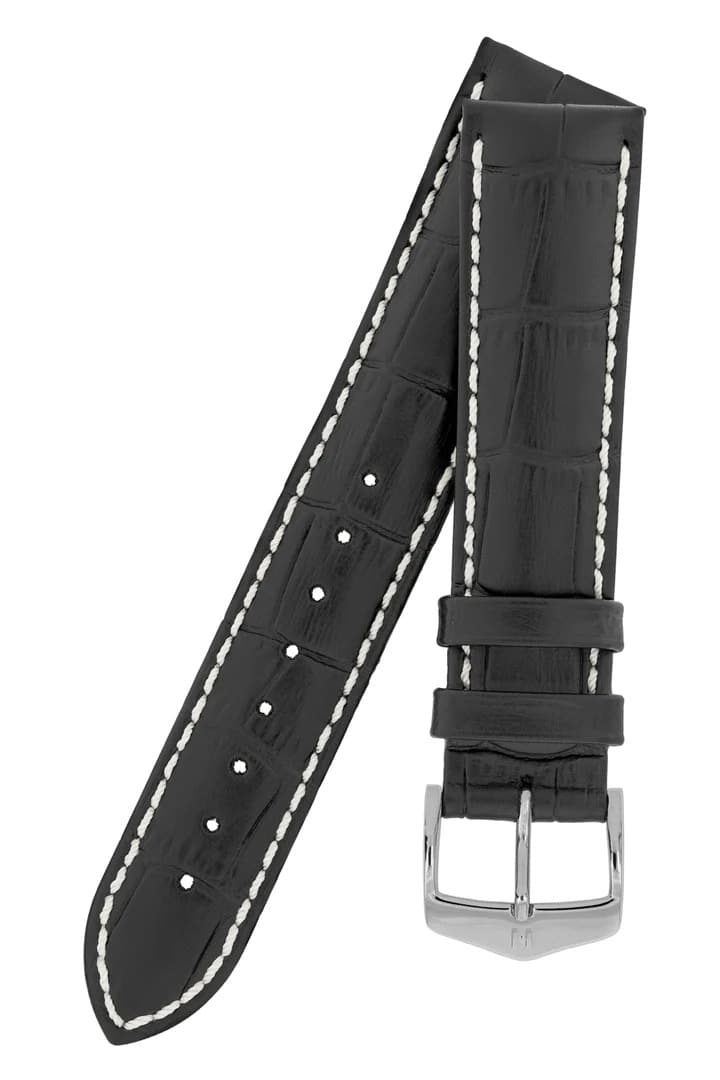 Hirsch MODENA Alligator Embossed Leather Watch Strap in BLACK
