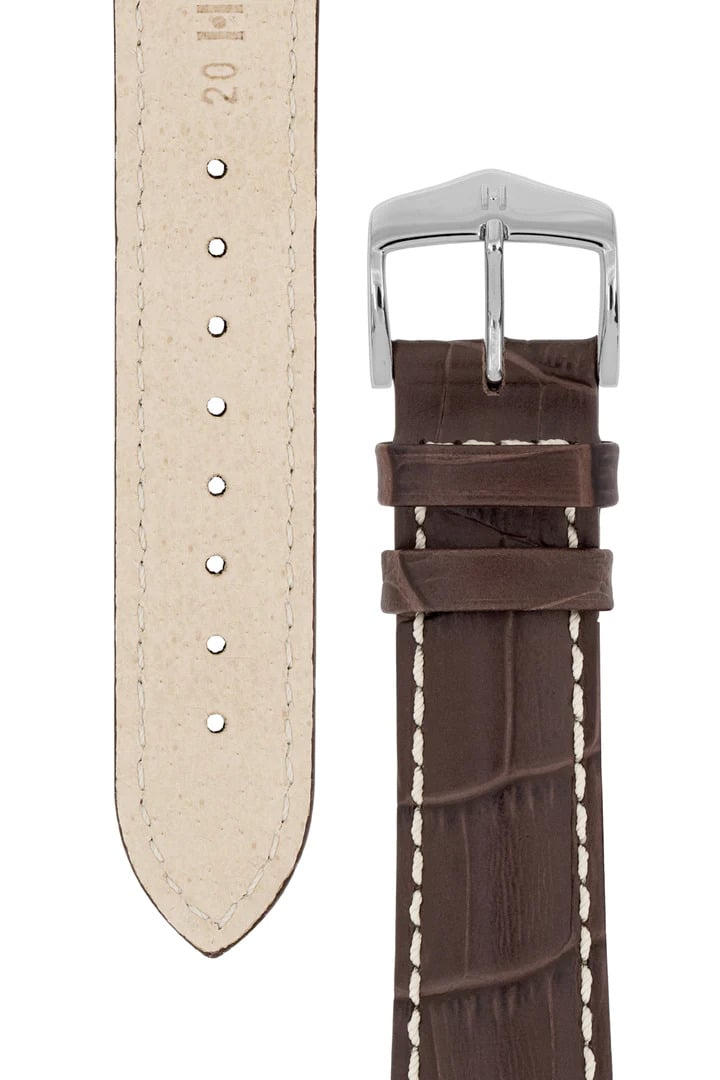 Hirsch MODENA Alligator Embossed Leather Watch Strap in BROWN