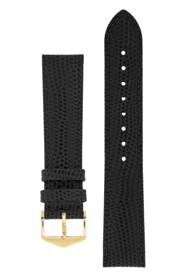 Hirsch Rainbow Lizard Embossed Leather Watch Strap in Black