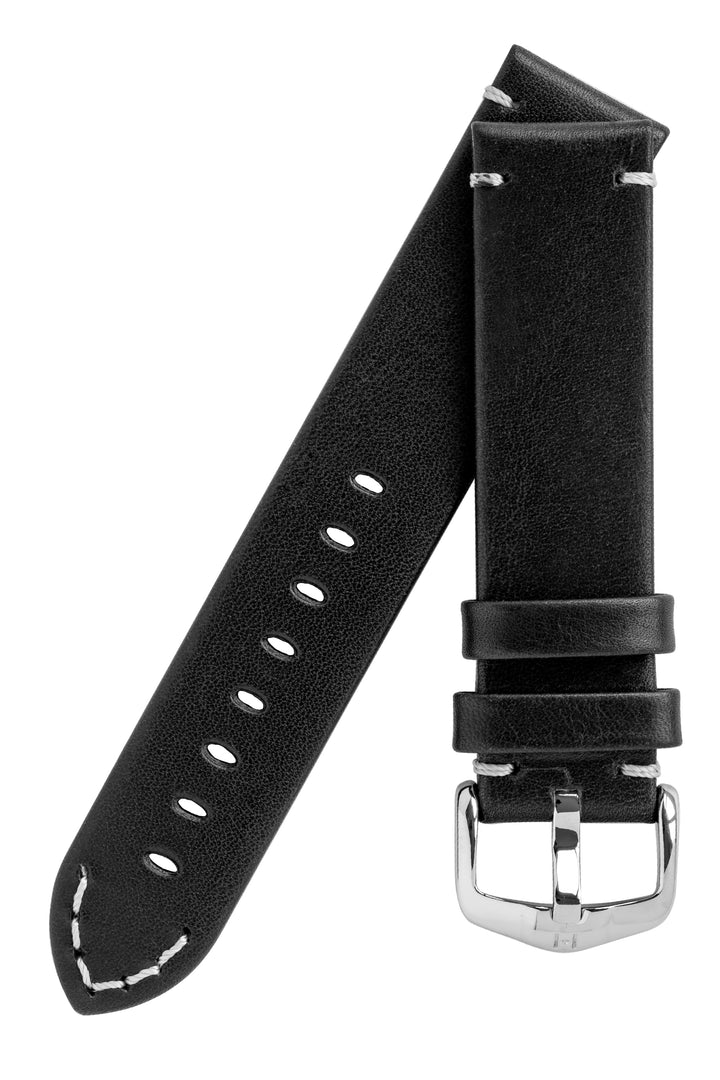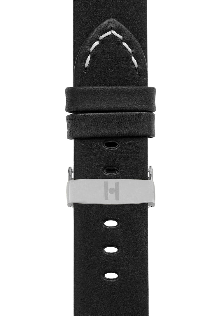 Hirsch Ranger Retro Leather Parallel Watch Strap – Black