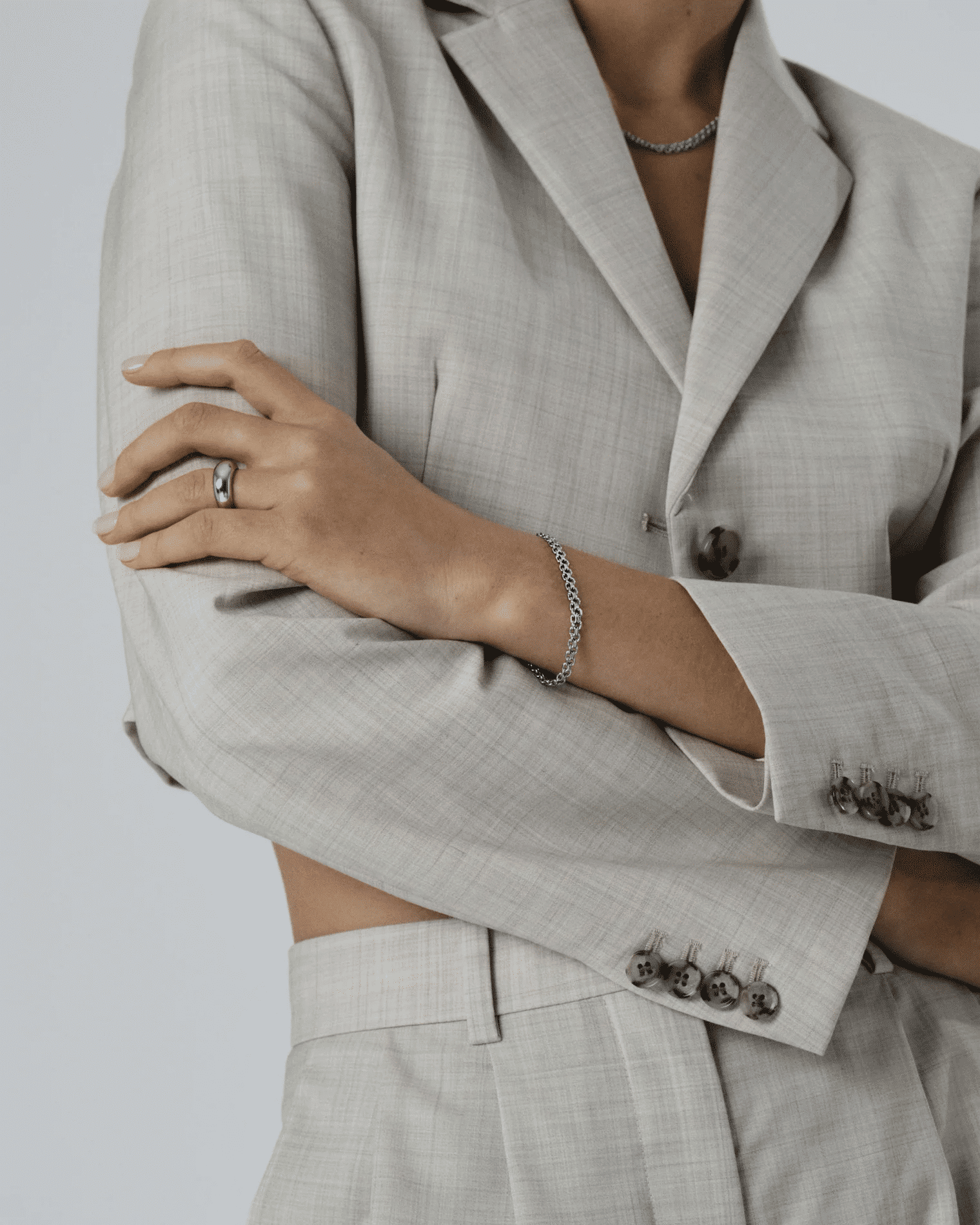 Armbåndet er laget av massivt, rustfritt stål med PVD-belegg. Dette gjør at smykket er meget slitesterkt og at det tåler vann. Her kan du bade, dusje og trene uten å bekymre deg for at armbåndet mister farge.