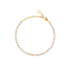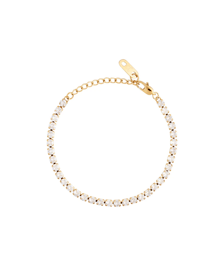 Vakkert tennissmykke fra Mockberg som passer til alle anledninger. Armbåndet er et nydelig blikkfang rundt håndleddet, både alene eller kombinert med andre smykker. Alle smykkene i Mockberg sin Waterproof kolleksjon, inkludert dette tennisarmbåndet, er laget av massivt rustfritt stål med 18K Gull PVD-Belegg. Dette gjør smykket meget motstandsdyktig mot vann, riper og slitasje. Derfor kan du både bade, dusje, trene og danse med ditt nye tennissmykke, uten å være redd for at det skal miste farge.