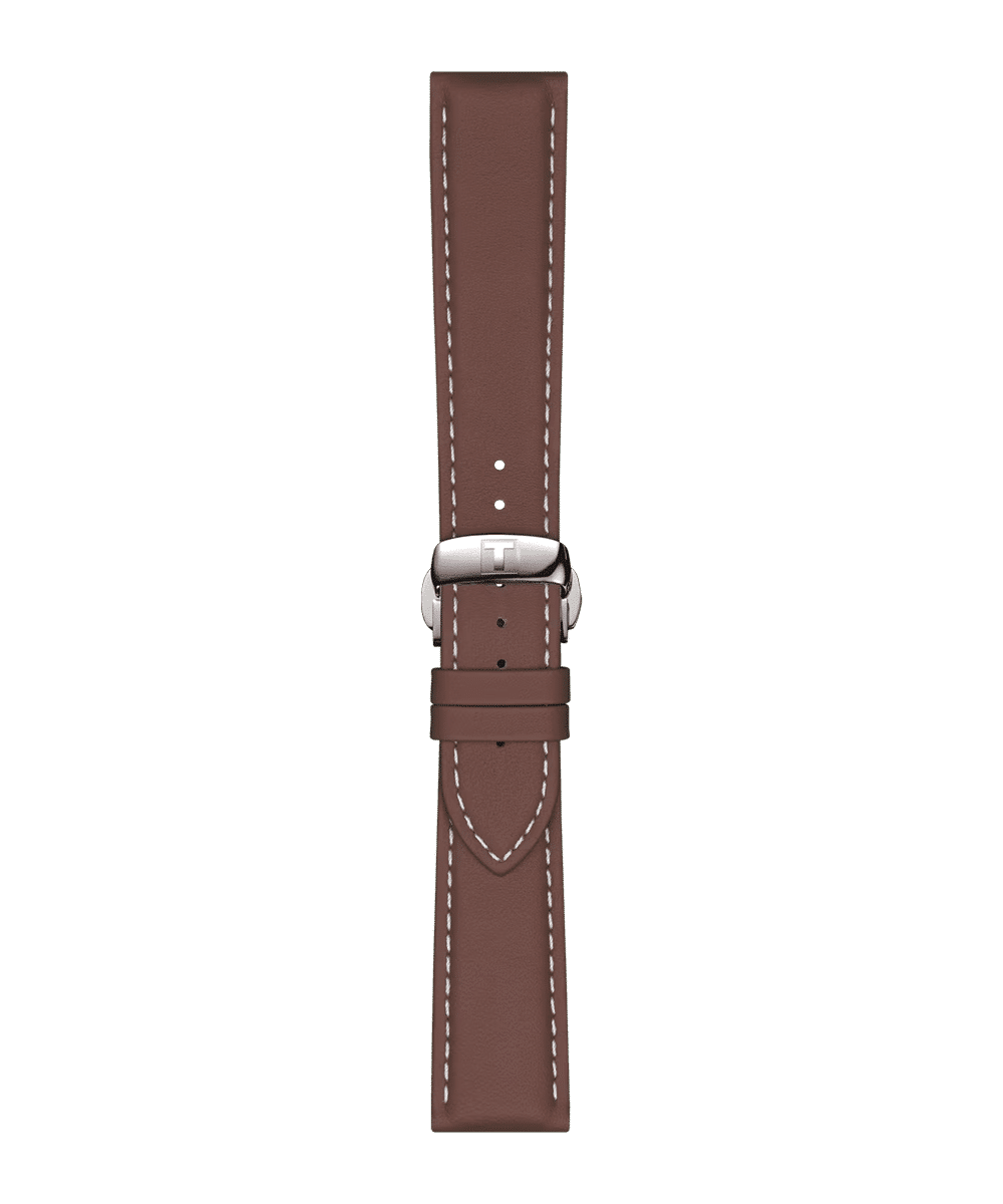 Original brun skinnrem med butterfly-lås med utløserknapp. Reimen har enkelt og raskt utskiftbart feste. Kompatibel med blant annet Tissot Gentleman.