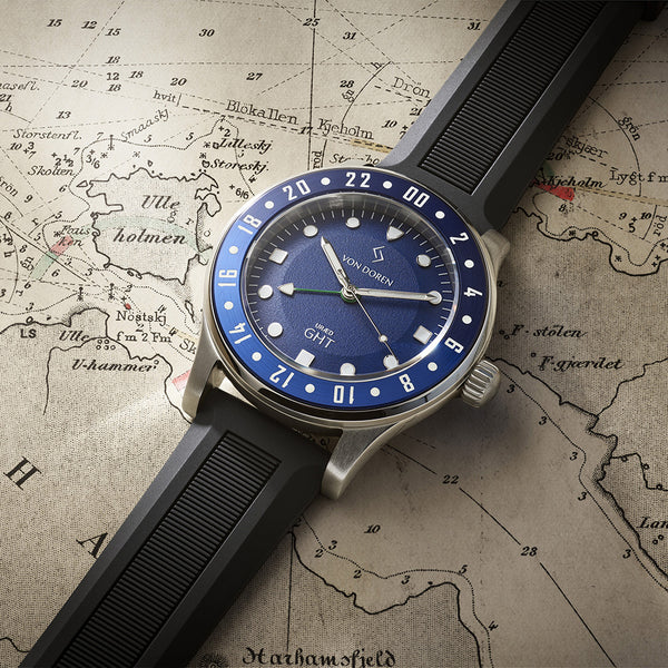 Hjertet i modellen er det sveitsiskproduserte Sellita SW 330-2, et automatisk urverk med GMT-funksjon som gjør det mulig å følge to tidssoner samtidig. Med en gangreserve på hele 56 timer kan du legge klokken fra deg i flere døgn uten å bekymre deg for at den stopper.